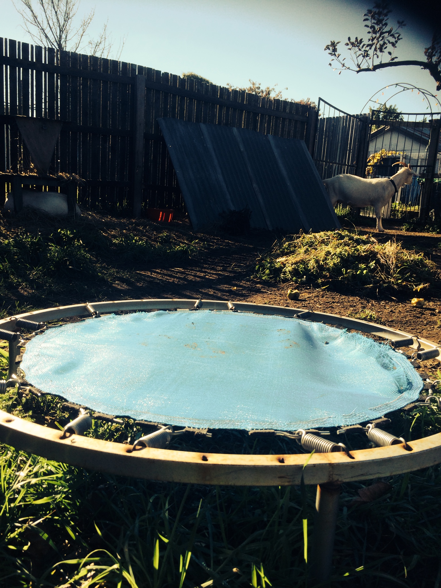 The other new thing on the Homestead this week had way less fiscal impact but is every bit as exciting.  In one of those “free to a good home” piles of goodies that appear on the footpath with way more regularity since the earthquakes, a mini trampoline was spotted.  We have it on very good authority that goats, kids in particular, love trampolines, so it now graces the paddock where the two goats have studiously ignored it and the Milk Maid has discovered there is a very good reason gumboots are not mandatory gymnastic apparel.