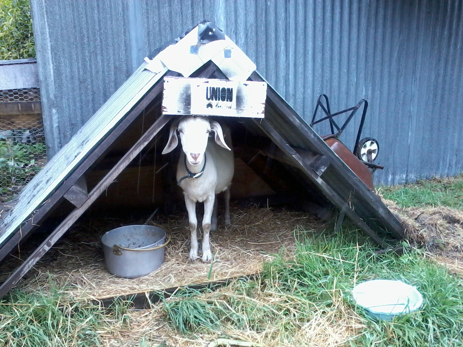 The Misses Leia and Geraldine are a different kettle of…fish, ahem.  The goats couldn’t care less how cold it gets.  They are quite happy shunning their shelters to sleep under the stars in the depth of winter, waking up with a fine riming of frost on their backs and their breath misting.  As long as there’s hay in the feeder and the promise of an extra dollop of molasses in the feed bowl, they’re happy campers.  The first drop of rain, though, and they’re standing bellowing at the gate with their shoulders hunched, coats quivering, radiating reproach. They eye the churned up mud-plug at the paddock gate with the disdain of the first Queen Elizabeth minus Sir Walter’s cloak and, if called to traverse it, totter as if on stilettos.  This concern of theirs is well founded as they are prone to footrot, so it is mutually beneficial for us to keep an eye out for prolonged wet spells and meet them head on by ensuring the bedding is deep and clean in the shelters and a couple of barrow loads of topsoil are dumped on the paddock low points.