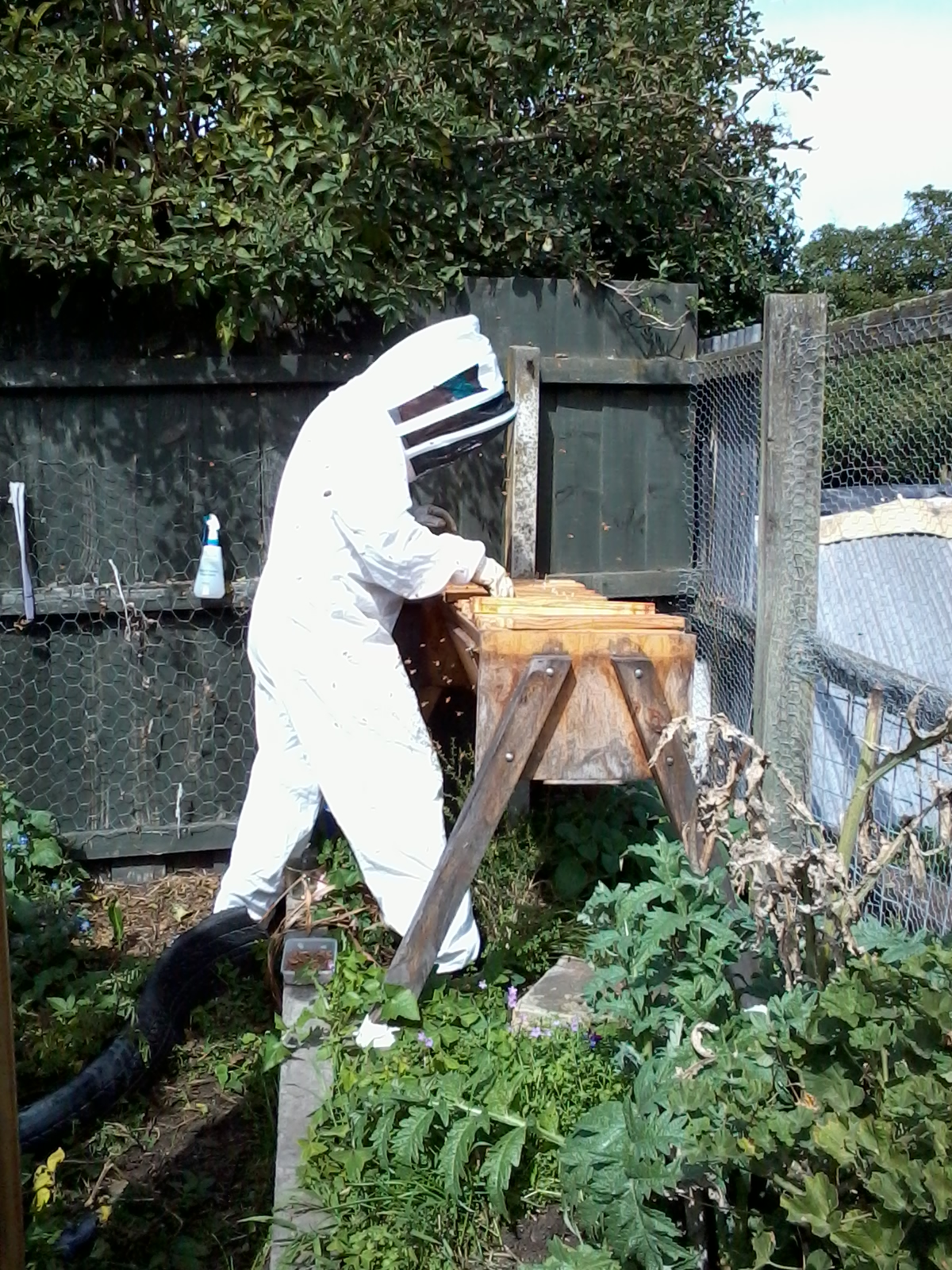 There they live in their top bar hive behind the washing line attracting little attention while doing their utmost to keep us all fed and the planet happy.  Every once in a while The Bean Counter dons his space suit and checks them all out, ensuring they have a supply of sugar syrup for those days they are confined indoors and removing any unwise comb constructions, and for the rest they just go about their business.  Since their arrival, as documented in Abbey Road trip, they haven’t missed a beat.  Their colony continues to grow, our garden and those of our neighbours continue to reap the benefits, and we all look forward to harvesting the spoils of their labour in the spring. Sneaky fingers in the byproduct of the The Bean Counter’s comb neatening forays has us feeling rather smug about this particular harvest.  Like the cats, they are masters of their own whereabouts and require no direction from us.  They don’t hold us responsible for inclement weather and work tirelessly when conditions are favourable,  they help rather than hinder the Homestead vegetation, and the impact of the weather, like their squabbles, is dealt with in house.