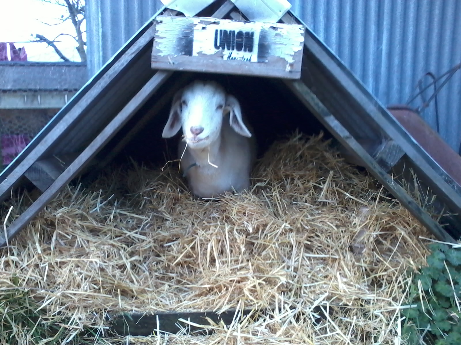 It’s a situation that’s great for a broad-picture approach, and one allowing us to indulge in a little amateur forecasting of our own in a very hit-and-miss kind of way. That our two trusted sources and our own form of weather voodoo, the newly installed Homestead barometer, are currently all holding hands and nodding furiously in agreement (we’re talking figuratively, here) makes us take the prediction of a polar blast including sleety showers and even mention of the dreaded “s word”, pretty seriously. Hunkering down in front of the woodburner is only enjoyable if you know the menagerie is well prepared for. A trip to our friends at Burwood Produce was undertaken in the interest of conscience easement, and a couple of bales of straw were secured to top up the goats bedding. Our thoughts were to utilise a bale per goat shelter; we wanted it to be super snug in there just in case the babies,which we know they are incubating (truly), decide to make their debut mid-flurry.