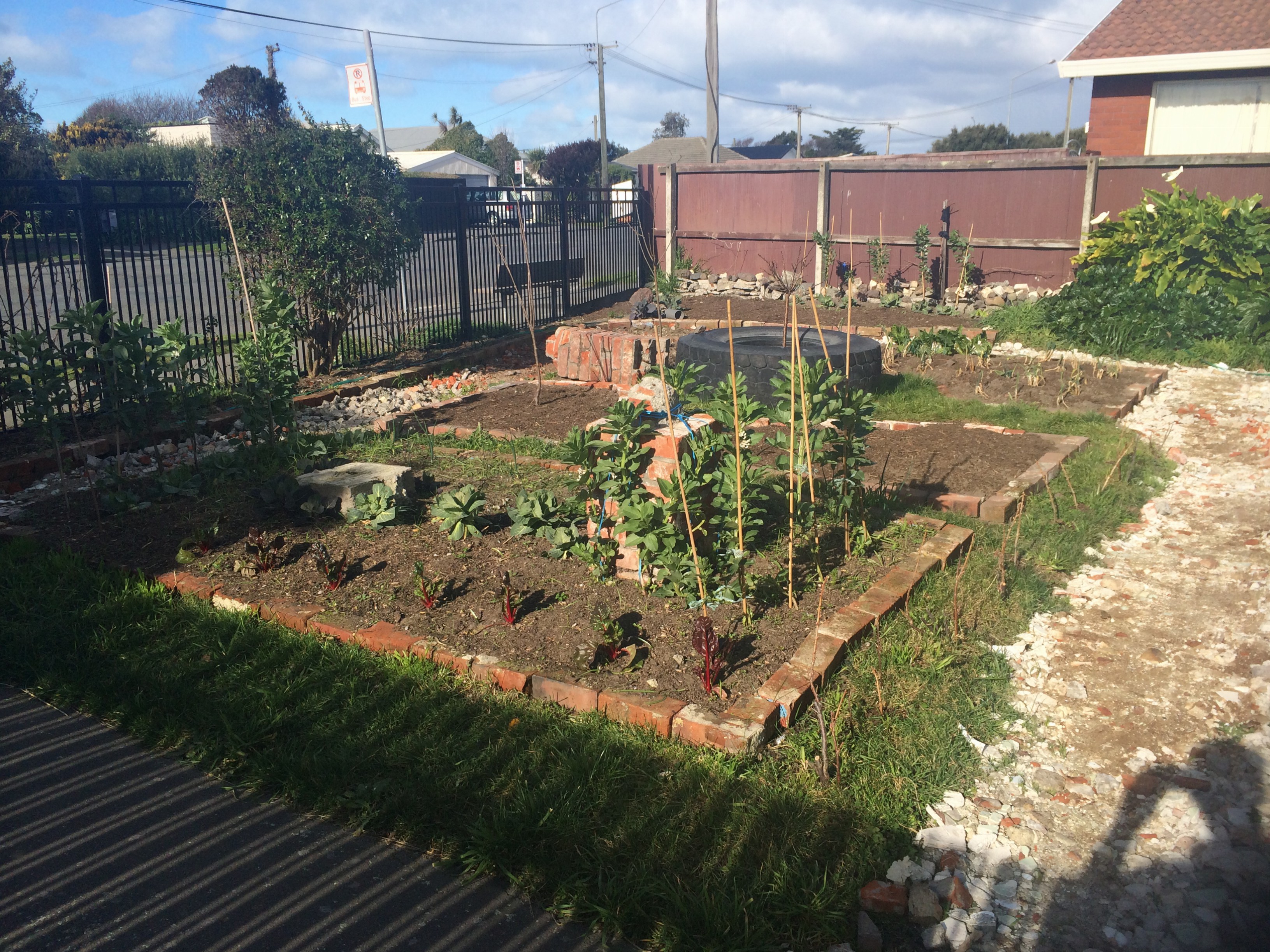 Yes, the bricks come from the chimney we took down plus a heap of others we found around the place – presumably from other dismantled chimneys. Like you, we can’t wait until the gardens are actually growing something and we’ve covered the crushed up hardfill with shingle…one step at a time. New Brighton is great, there’s always something happening, but we often have to compromise otherwise we’d never get anything done here.