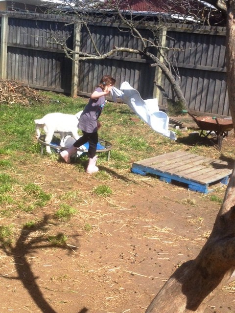 With the kids getting older, their antics get more adventurous.   Otis’s gate-bawling sessions last only as long as it takes for Ruby to remind him of their latest game: conquering Mount Goat Chalet.  Thankfully all goat paddock neighbours, drawn by the clatter of hooves on roofing iron,  forget their irritation at having their weekend sleep-ins interrupted when they clap eyes on the two of them. Their joy at the game is reflected in the grins on the audiences faces and, if it’s cost us a few boxes of eggs, it’s all in line with being neighbourly.