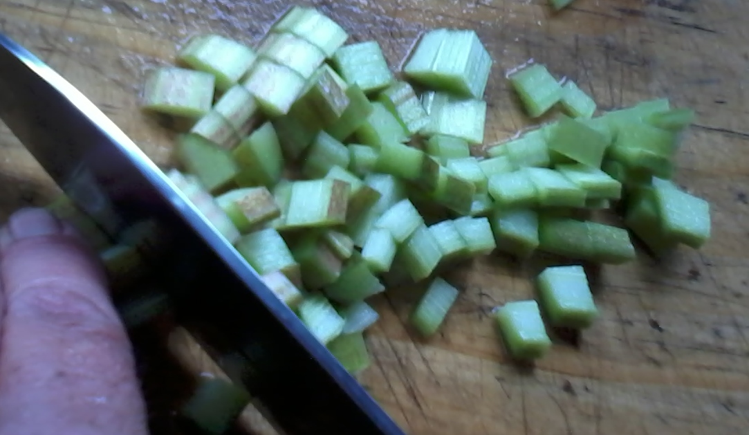 It may be the soil that makes our rhubarb such a vigorous grower, or the variety (the heirloom, Victoria) or maybe the fact that nearly all our scraps, scrapings and meal preparation trimmings (but ironically, not those of the rhubarb plant itself) go through either a chicken or goat before ending up in the compost we fling under the plants. As an aside, see how we said “plant” there? Apparently, it has managed to polarise even those tasked with the classification of the Rheum rhabarbarum. Technically a vegetable (a plant or part of a plant used as food) as opposed to a fruit (the sweet and fleshy product of a tree or other plant that contains seed and can be eaten as food), in the USA a 1947 New York court ruled in favour of it being lumped in with the apples, oranges and bananas on the basis of that being how people ate it. Fruit or Vegetable, it grows rather well here in our little patch of earth and Glory, Glory Hallelujah or *insert suitable antonym – Nobody Knows the Trouble I’ve Seen, perhaps – by visiting each of our three plants we have managed to put together our first rhubarb taste of the season.