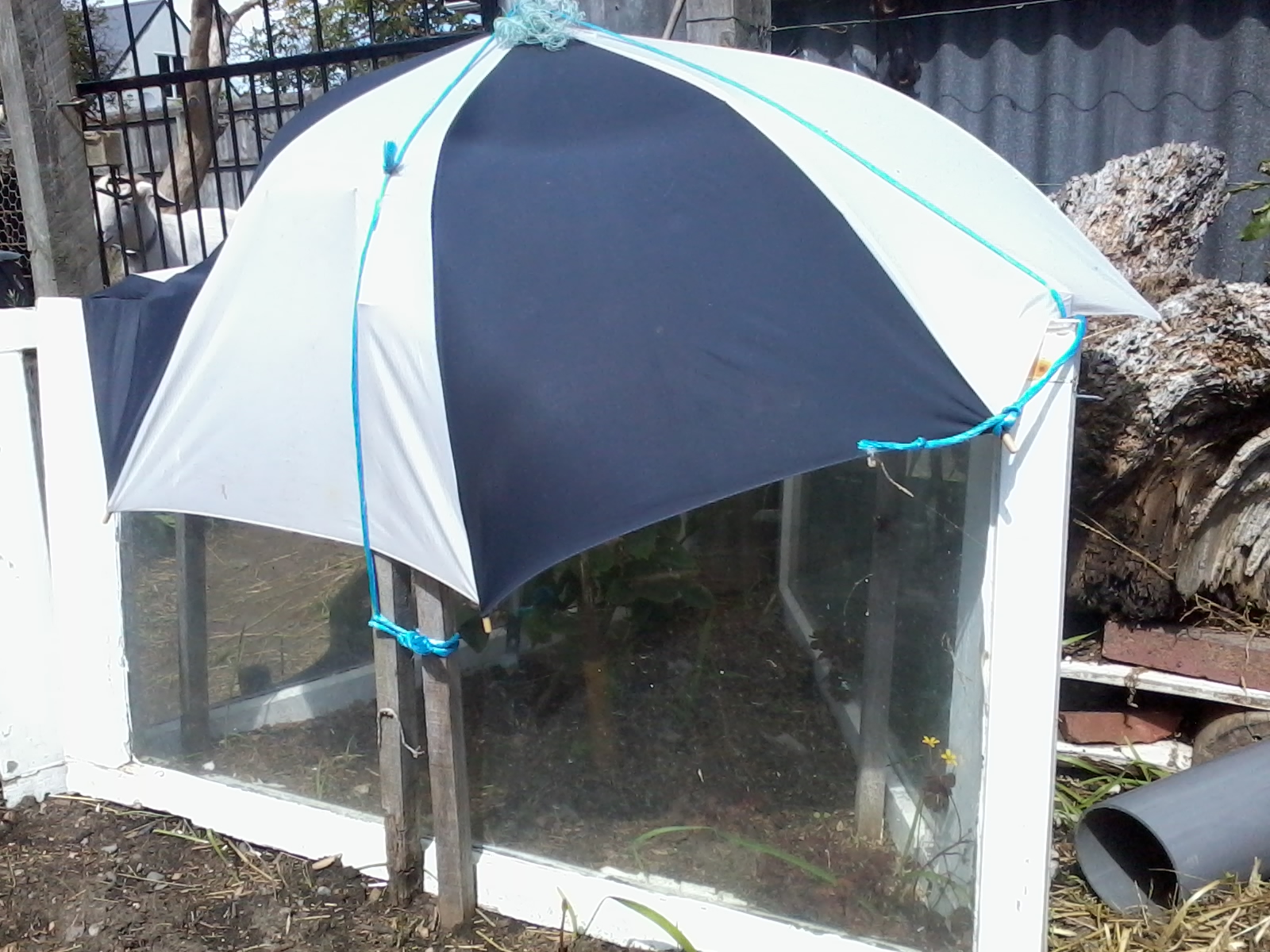 This crafty contraption has been the cause of a great deal of interest over the last year.  Most first time visitors to the Homestead tend to question it’s relevance, usually in a sentence beginning, “What the….?” In fact, what it is is the most cunning of plant coddling devices; three windows saved from the Homestead double glazing makeover (perfect for wind protection) with added frost protection of a broken umbrella salvaged from the bus stop. Today the binder twine was reverently unknotted (the easterly demanded quite a few of these, often hurriedly retied in howling gales with the umbrella flapping wildly), the cover was removed with a flourish and the delicate princess that is our lemon tree was exposed to the New Brighton elements.