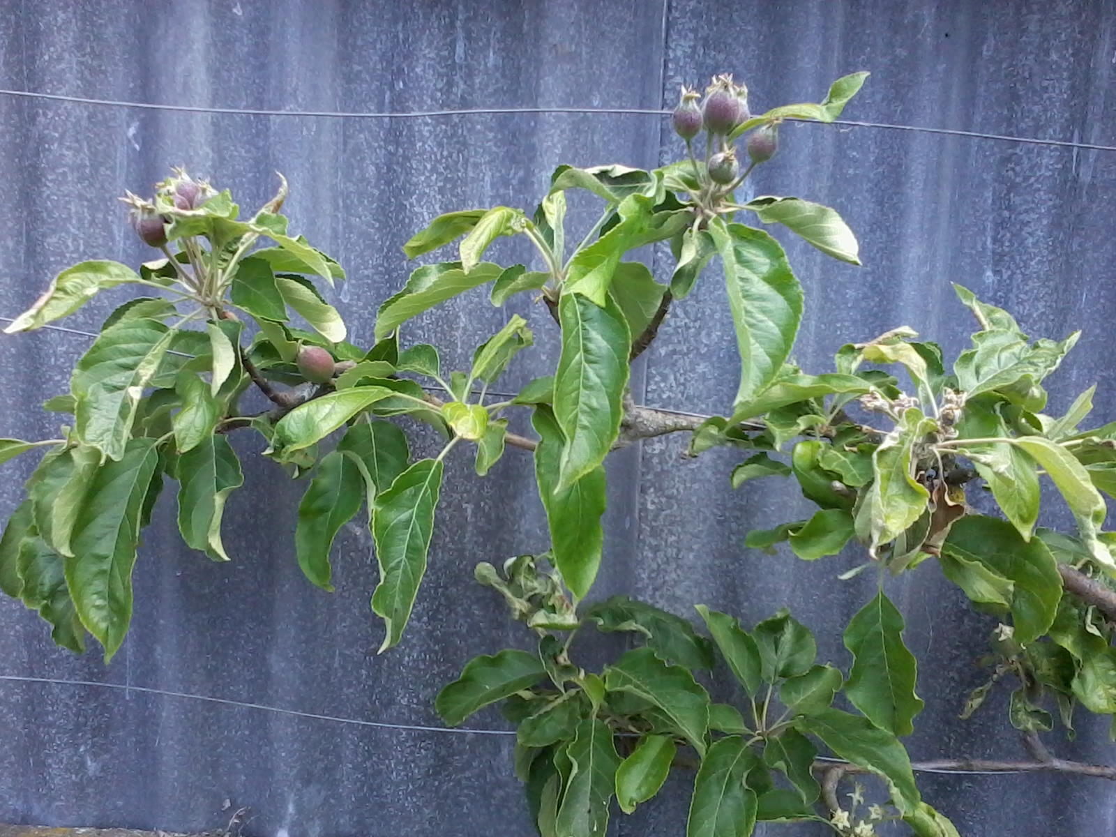 See, it wasn’t us after all! Down the garden we charged to photograph the evidence of fruity abundance before Mother Nature stepped in; not a moment too soon, as it turned out. As we type, a roaring Nor’ Wester is flinging blossom, sand and debris every which way, thankfully obscuring a clear view of the baby trees.