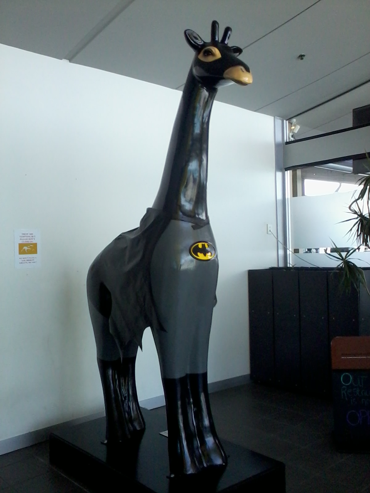 - Bat Giraffe by Troy Gutry protecting New Brighton from evil doers from the perfect vantage point : the library foyer at the end of The Pier. Holy Topview!