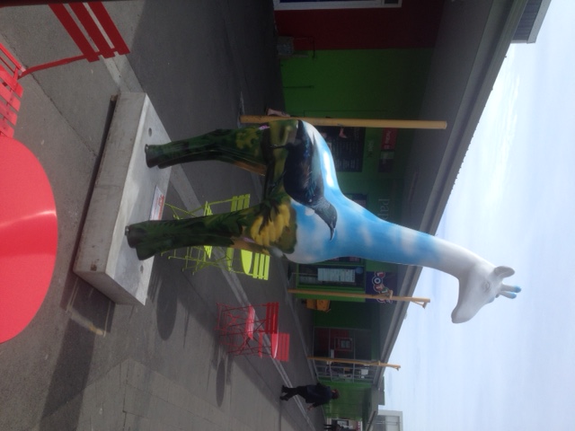 I like all the giraffes you showed pictures of, but I think “head in the clouds” is my favourite. Giraffes are not so bad – it could have been rhinos with no catchy slogan, which is what Sydney, Australia was touting back in March, fundraising I believe for breeding programmes to make up for the numbers being lost to poaching. Here, several years ago, it was orca (killer) whales, and later, spirit bears – both creatures indigenous to the province. The money raised at auction was for Easter Seals, which is a children’s charity run by the Lions Club (which I think you have in NZ too). Makes me wonder what archaeologists will think of our sculpture culture in a few centuries, should these things survive that long (and what ARE they made of?). Maybe it’ll be like uncovering Roman remains, with all those generic headless statues…