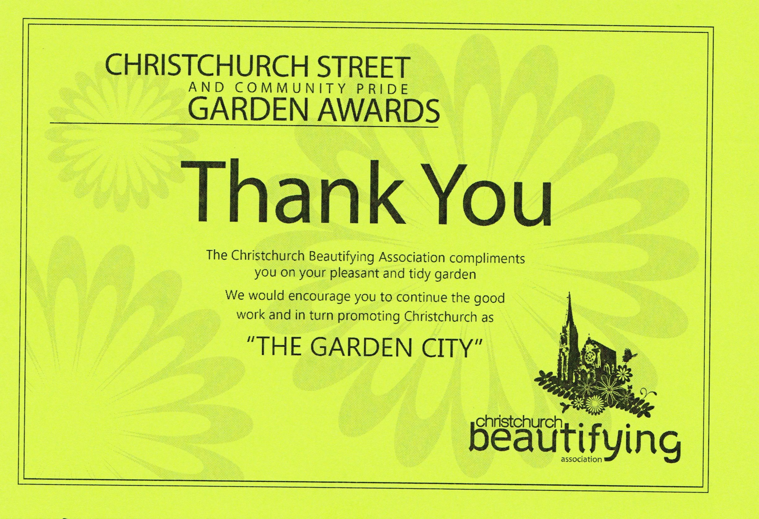 I love that the City of Christchurch does that with the certificates – a pat on the back is always welcome! And I must say well deserved, that front bit is really looking wonderful.