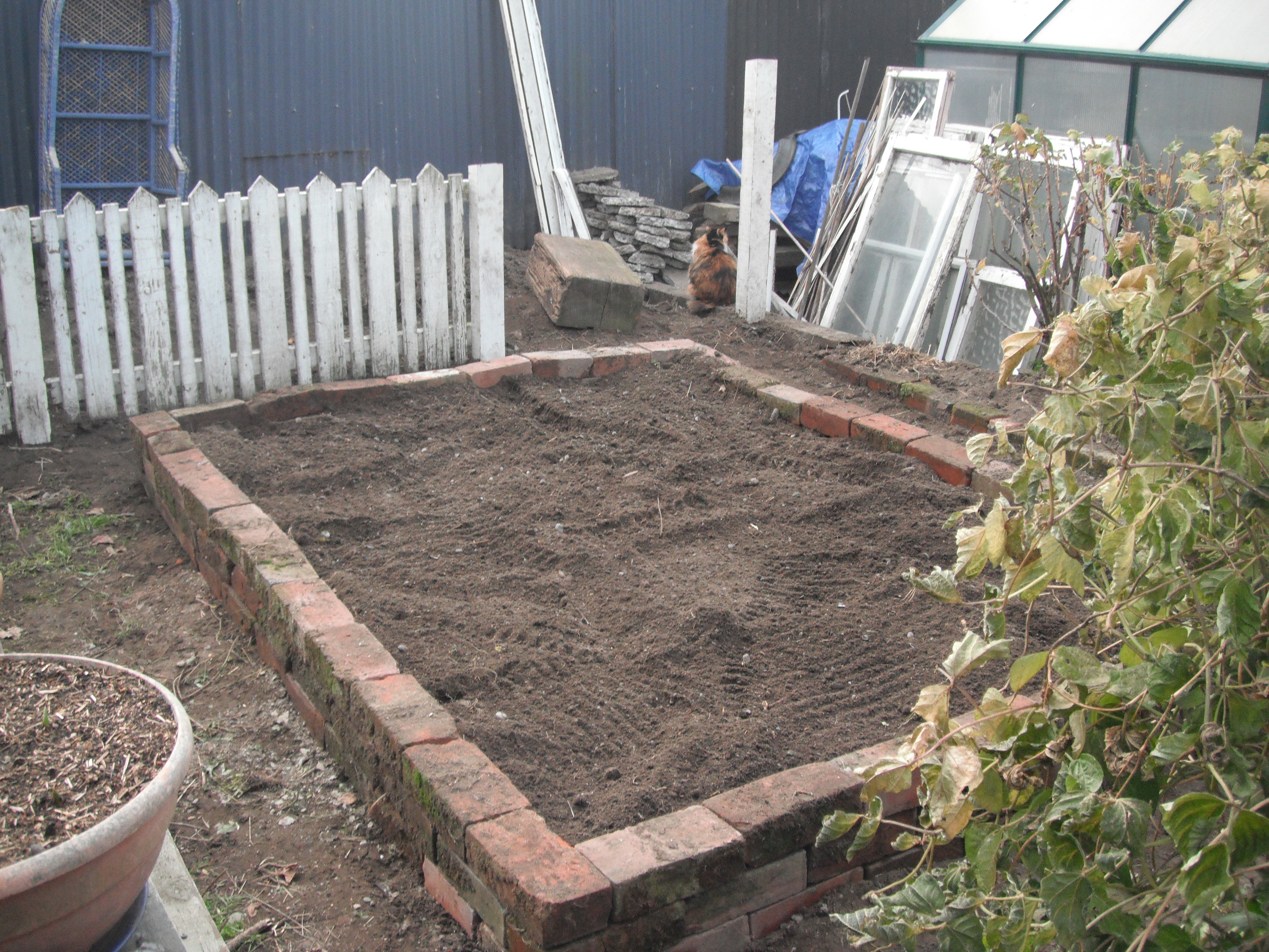 Then it was back to the perpetual garden clock, where we repurposed an inherited picket fence to act as a border between the proposed Homestead Orchard (well, three fruit trees, but we can dream) and garden bed number 1. Meanwhile, The Bean Counter finished removing the elderly slab of concrete discovered languishing half a metre below our first ever garden bed so that, this week, the on-Homestead workforce (unaffected by the plague) could resurvey, restack and refill it.
