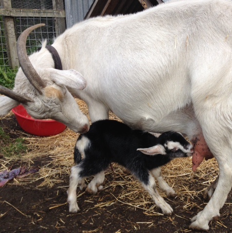 The Goat Herd was on hand to witness the arrival of kid number one; a healthy, strong doe complete with wattles and looking every inch the pure-bred Saanen princess.
