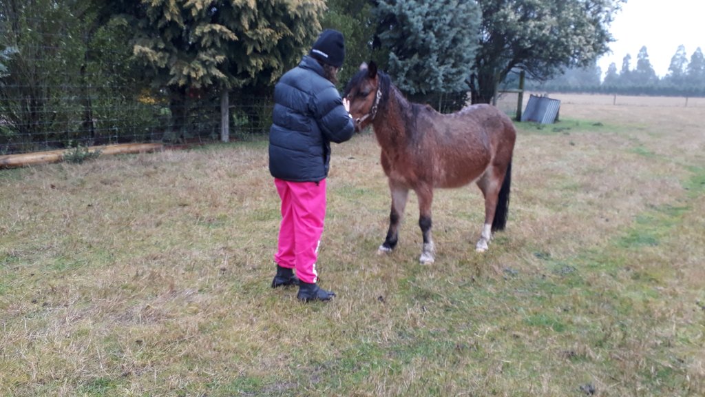 Proof that she is not quiet about her desire to own her very own equine arrived last Sunday in the middle of a torrential downpour and, no, we’ve not gone and invested in some Homestead Horseflesh. Not yet, anyway. Instead, Horse-riding Instructor Clare, a lady who strongly believes the best way to gauge the intensity of the dream is to have one in your back paddock for a while, followed through on her threat *ahem theory and Stitch has now been issued with his Union Homestead Visitor Visa.