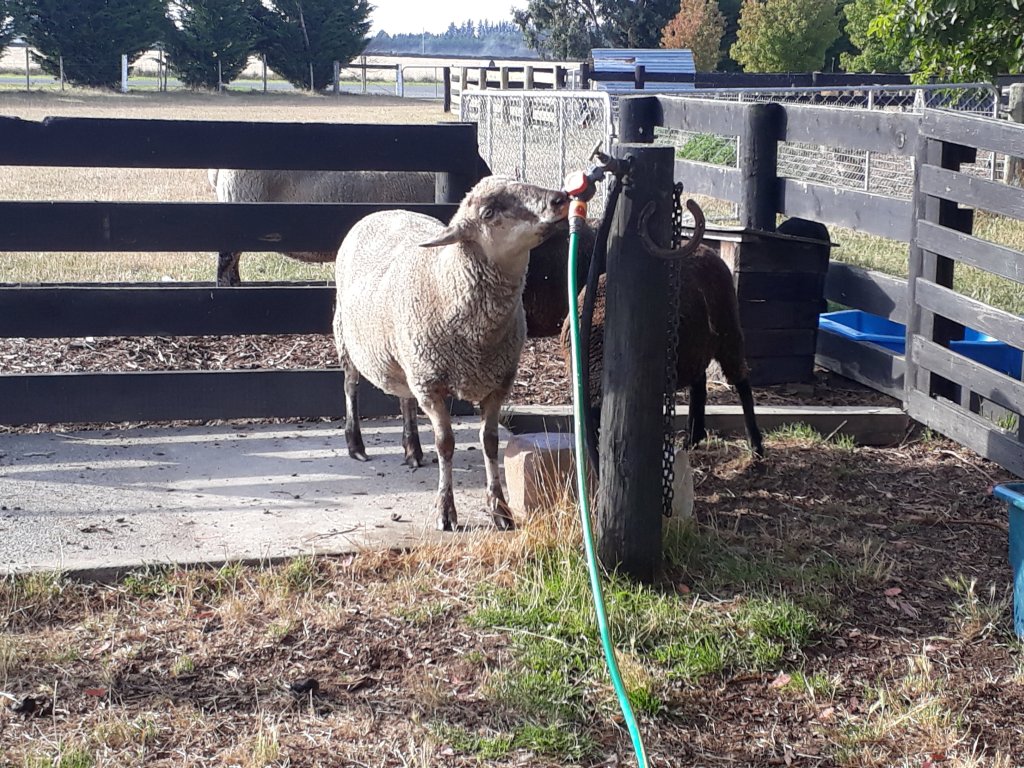 One way to get me really angry is to proclaim that sheep are stupid. I can feel my blood pressuring building even as I type this, but I will not harp on. Instead, here’s our dear Froda who has figured out water from the tap is way nicer than the stuff that’s been sitting in the trough all day, thus making me feel less bad about our shoddy hose fittings.