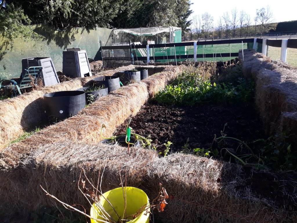 In true UH style, pea straw bales were used to set out the garden because they were around when we needed something to border the garden. I had visions of beautiful rustic timber raised beds…one day maybe. The soil is getting better and, after 3 full years here, I now have a better handle on what will and won’t flourish. Ive used the tubs for various things but the best have been yams and parsnips. Not 100% sure why they were so successful – particularly the parsnips. The Farmer is looking forward to having his belongings close at hand again rather than scattered around the house but hes going to miss having the woodburner in his room 😁
