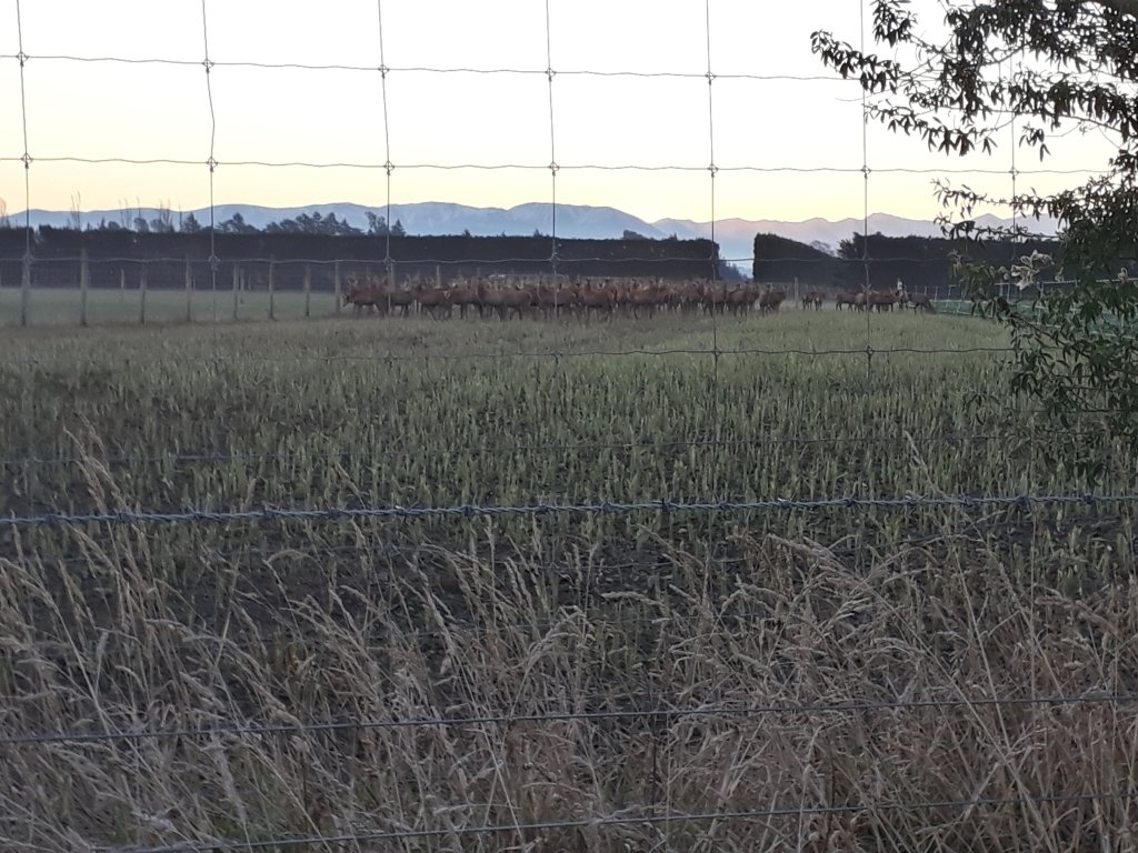 Down the road, the deer have been brought in to strip graze the paddock of brassica Colin and I have been watching grow over the last few months of our evening walks.