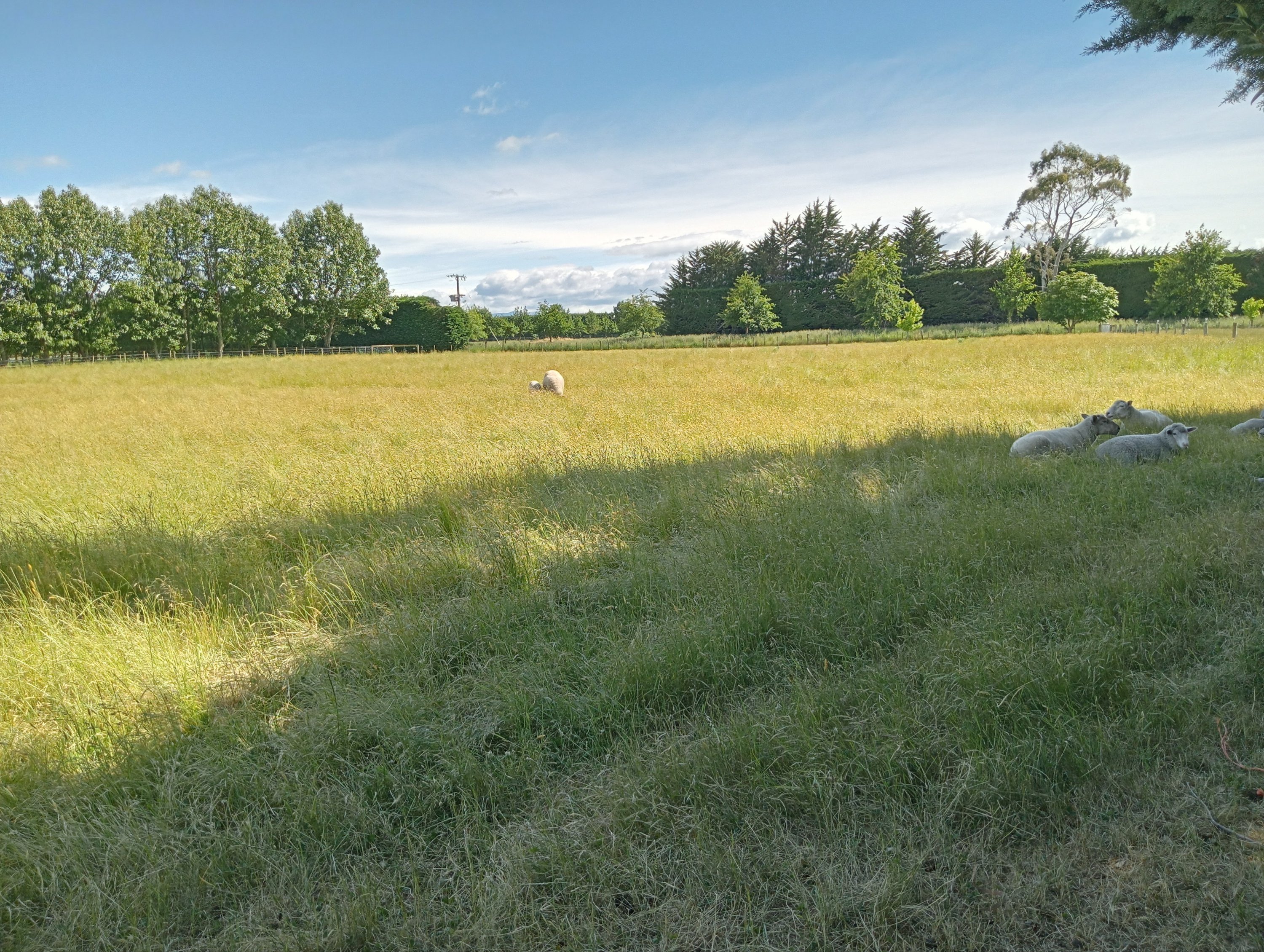 Whilst we humans were busy yuletiding, it was business as usual for the menagerie. Left to right, Monday to Thursday 10 am-ish photos: hot sheep, wet Leonardo Rooster, Colin demonstrates how he copes with the hot, blustery days, and Leo leads a chicken pitch invasion on the newly mown, shade dappled front lawn.