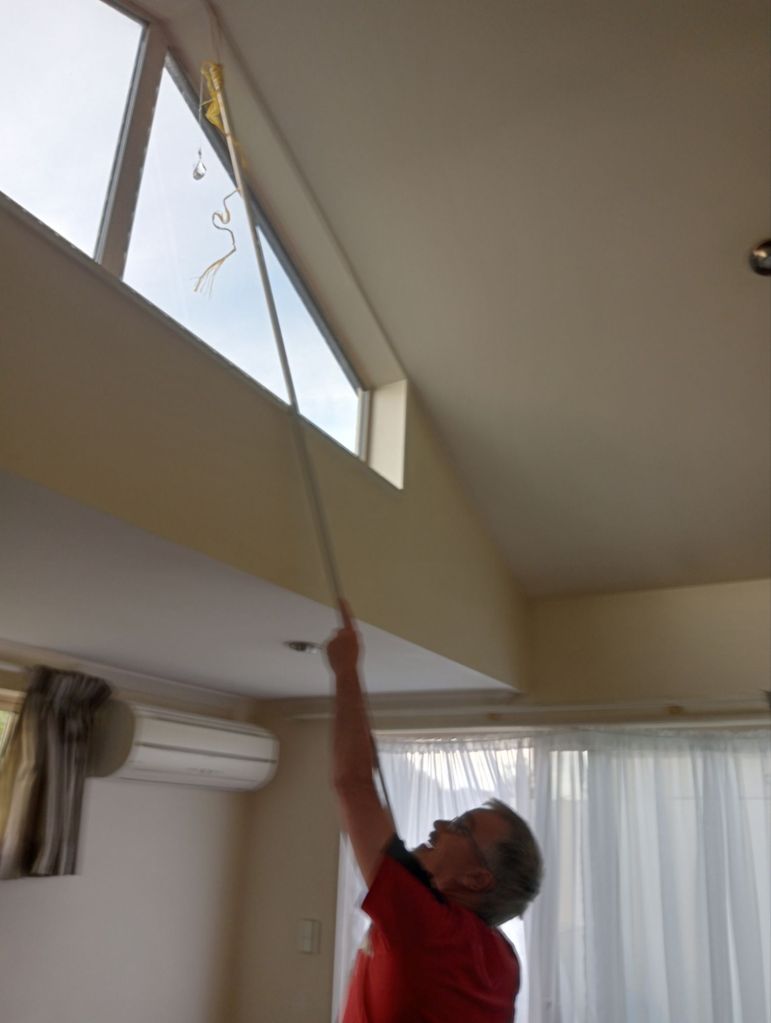 and speaking of attitude: my Girl Guide whipping knot (and it’s been a wee while since I earned my Knots Badge) was substantial enough to secure chopstick to duster pole thus aiding in restoring the Urban Outpost’s suncatcher to its rightful spot. That my over-vigorous dusting had it plummeting in the first place is neither here nor there (of course we have bindertwine in the kitchen draw at the Outpost – Be Prepared and all that)