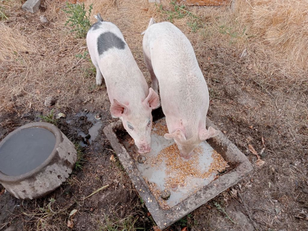 No sooner had I announced their arrival to you all, than they took a downward turn and I wondered whether I was going to be calling their departure way sooner than planned. In hindsight, they were hot and their house was cool, not used to ogling humans having started life on a farm as two of a great many, and feeling the effects of their journey to the Homestead. They are no longer the bashful babes they were on arrival and are growing at a rapid rate of knots. No prizes for picking who the sty boss is; that’s quite the waistline.