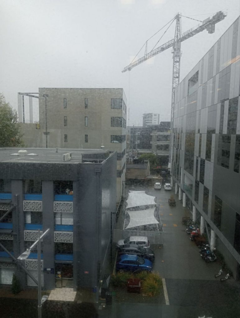 I’ve spent my time partaking in very positive hospital check-up (out their windows, the rebuild continues), a quick bus ride past Hagley Park (the photos doesn’t show how gorgeously autumnal it’s all looking at the moment), lunch in the mall while a particularly violent downpour passed over, and a leisurely stroll to the Urban Homestead.