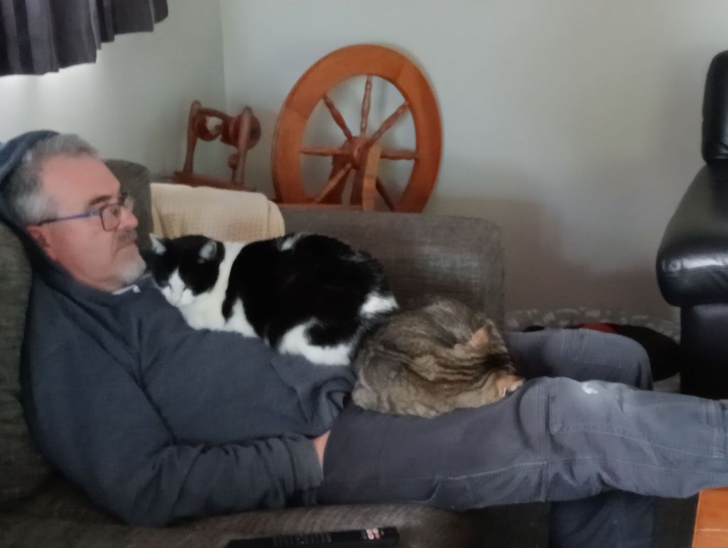 3. Hi, your mystery object master piece – what is its purpose? The upholstery pattern on the bus seems very familiar. I am glad to see the cats were using their powers of healing on a very receptive patient. As for the fluidity of time, now the spring solstice is behind us, the year will speed up as it rushes headlong into the 31st of December. Enjoy the ride!