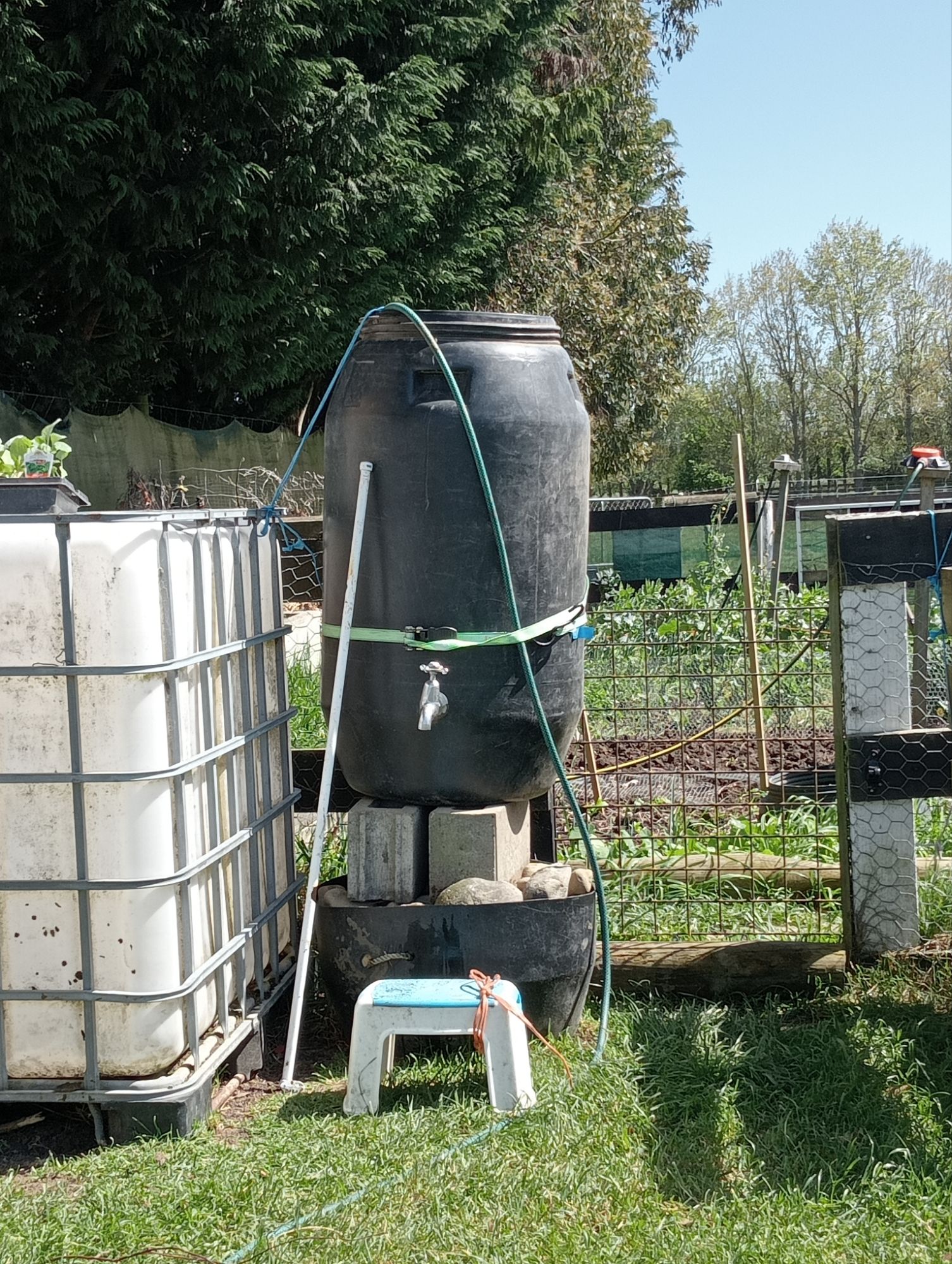 I am impressed you have a tap on your barrel containing the sheep dag teabag producing liquid fertiliser. I have a tea bag of horse poo in a plastic bin filled with water. I take the lid off to scoop the liquid out from the top.