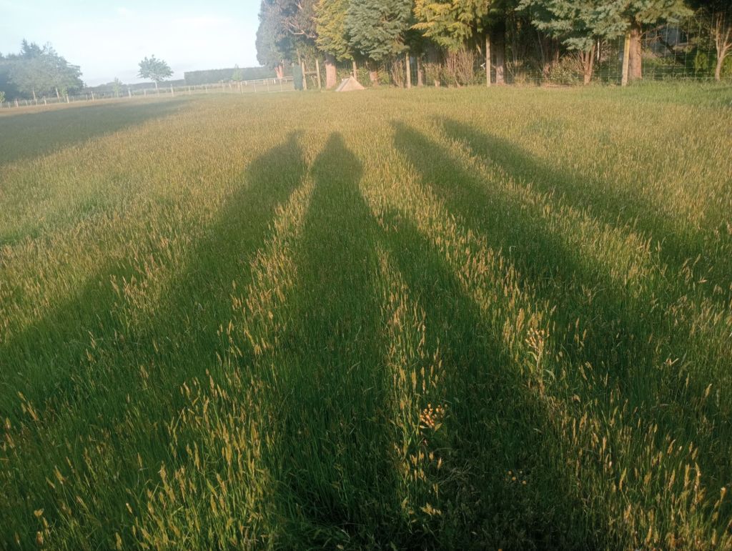 What lovely light! I love that time of year when everything is still lush and it’s not too hot yet, and there’s time after supper to enjoy an evening wander. We are in the opposite season of course, when eggs are muddy despite clean nest boxes and the dog’s favourite walking route requires gum boots for humans and the hated towel rub for dogs on return. Both have their merits I suppose, but after a dreary week. I could use the kind of day with long shadows in the evening.