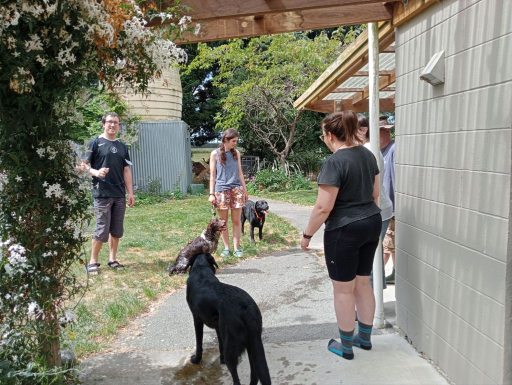 One day, I truly, truly hope, I will remember to snap the camera before cutting into the cake (carrot by request), at the present opening, and during the impromptu family lunch because The Farmer had to work this evening. But I did catch us all as we stood talking between our third and fourth goodbye