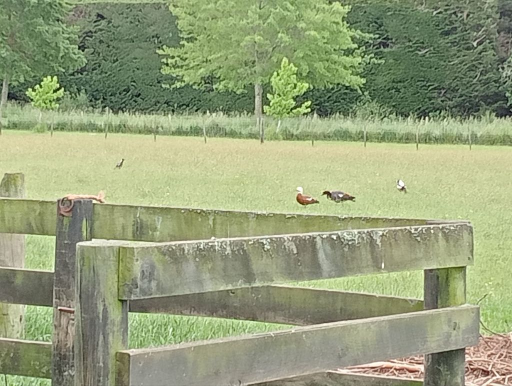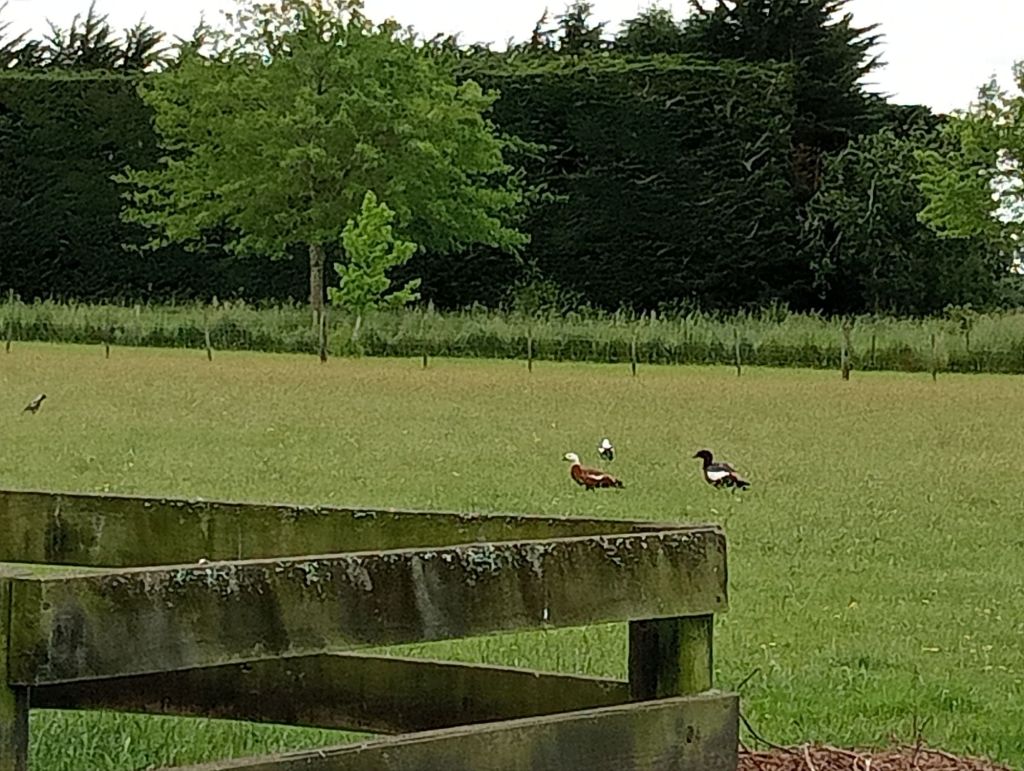 The magpies nest in our trees. People really loathe them but ours have never hassled us or our animals . The shelducks are less regular visitors.