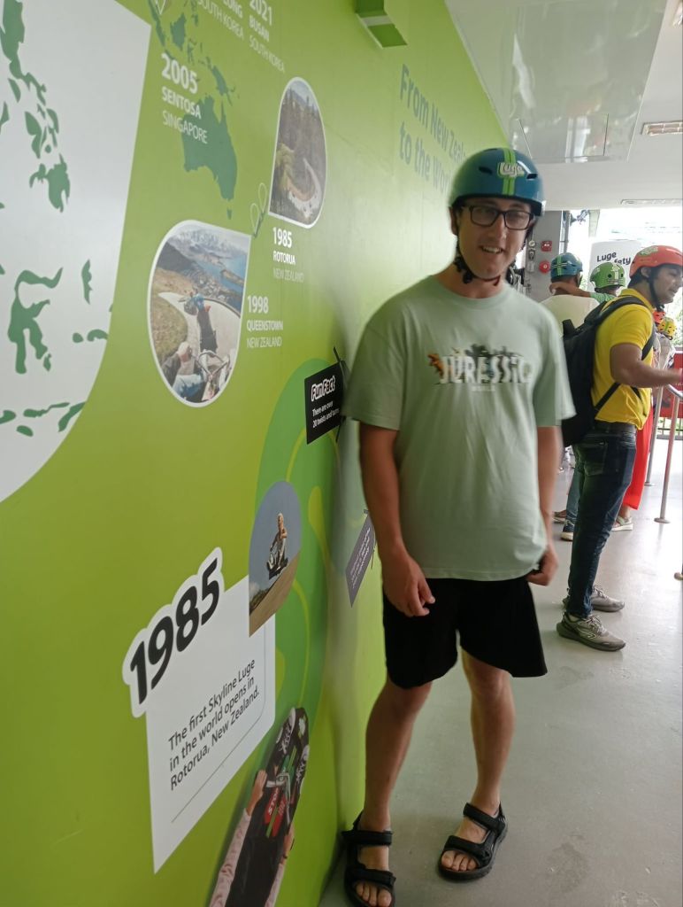 Long time readers of this missive will know that we lived for twelve years in Rotorua. When we arrived, The Engineer had just had her sixth birthday and The Farmer was fifteen months, we knew no one so I sought out a playgroup to join. This playgroup met weekly, with every fourth meeting being at the top of Skyline Skyrides where we would all ride the gondolas to the top of the mountain, drink coffee while the kids played, and watched the folk luging down. Before long we had a family pass and a great many visits were made over the years because, of course, we gave luging a try…cue: montage of happy family luging photos. Long story short, Skyline is here on Sentosa Island, Singapore! The Farmer was adamant we visit.