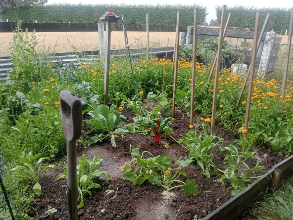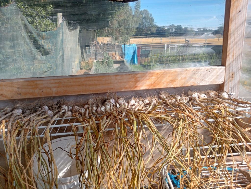 It wasn’t as bad as it looked. The garlic has now been harvested and is drying in the glasshouse, we unearthed some brassicas, silverbeet and squash, continued planting out more seedlings