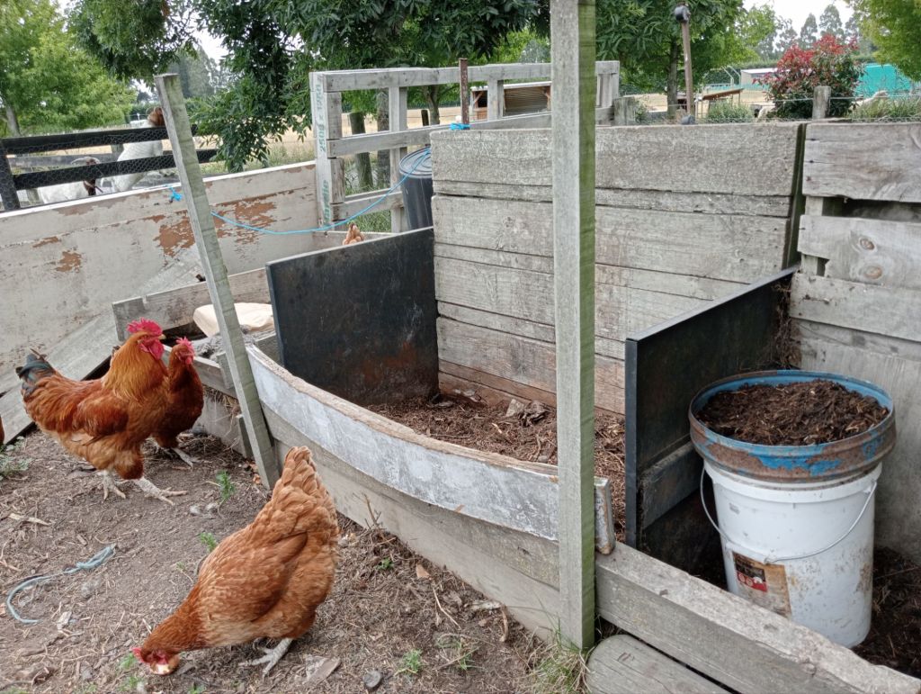 Of all the menagerie, the chickens are also the most constant return on investment for the Homestead. Eggs and meat are the obvious forms, but it’s their role in Homestead Compost Concoction that has really been noticeable of late.